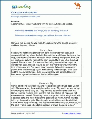 Read compare and contrast third grade text examples mobipocket